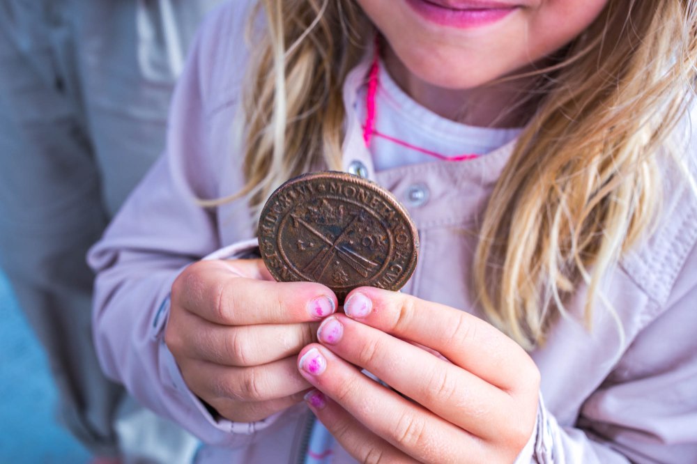 Väl uppe på avsatsen fick vi lyssna på Kenneth som berättade livligt om fyrens historia som hans egen familj varit väldigt inblandad i som lotsare. Coolast tyckte nog barnen det var att han hade ett helt eget mynt från en skattkista där ett fartyg gått på grund alldeles i närheten. Rätt häftiga va? Jag slogs av det faktum att de har samma sigill som än idag, trots storleken (dock på andra sidan myntet).