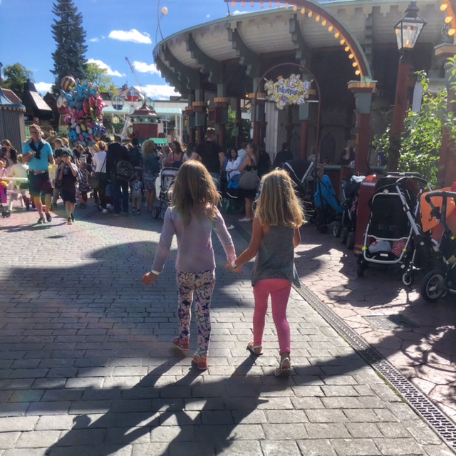 Igår stack vi hemifrån Nacka på förmiddagen och tog oss med buss och båt till Djurgården under strålande solsken. Det var dags för 7-åringarna att lösa in sina respektive födelsedagspresenter och de var något taggade. För att få ha med bästisen ensam på utflykt är ju stort! Grönan hade precis öppnat sina dörrar när vi klev in, parken kändes nästan tom – lovande. Så var inte fallet, sanningen var att det var kaos och alldeles för mycket folk på sån liten plats. Vår första karusell hade visserligen “bara” 25 minuters kö så vi inledde där. Gick sen för att prova oss på Bläckfisken, men fick reda på att den var avstängd.